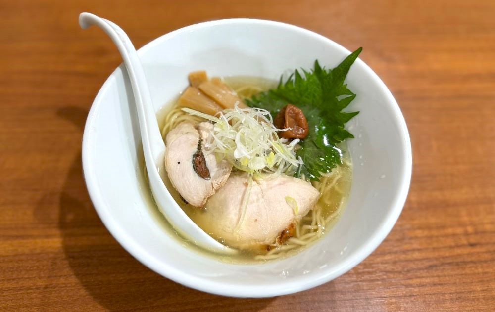 こちらが限定①の梅塩ラーメン。梅の酸味とスープの塩気のバランスがまさにいい塩梅で、とてもさっぱりとしていました。チャーシューも鶏なので、脂身が少なく、コッテリ系が苦手な方にもとてもおすすめです。