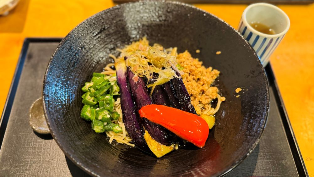 訪れた際には「揚げナスそば」があり、ジューシーな揚げナスにピリッとした豚ひき肉の甘辛煮がよいアクセントになっており、バランスが絶妙でした。