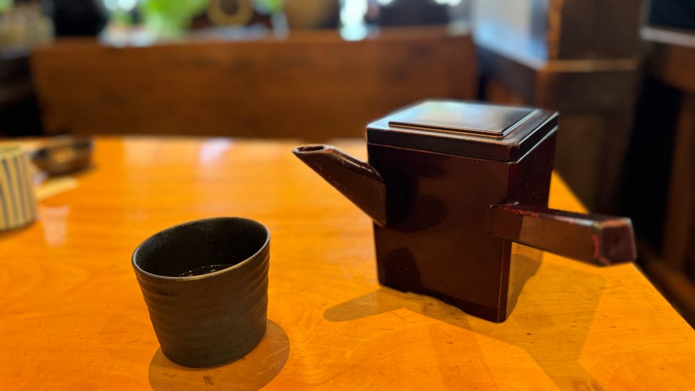 お蕎麦を食べ終わった後は、そば湯も楽しめます。お好みの濃さでいただくそば湯は、香りが良く、格別です。