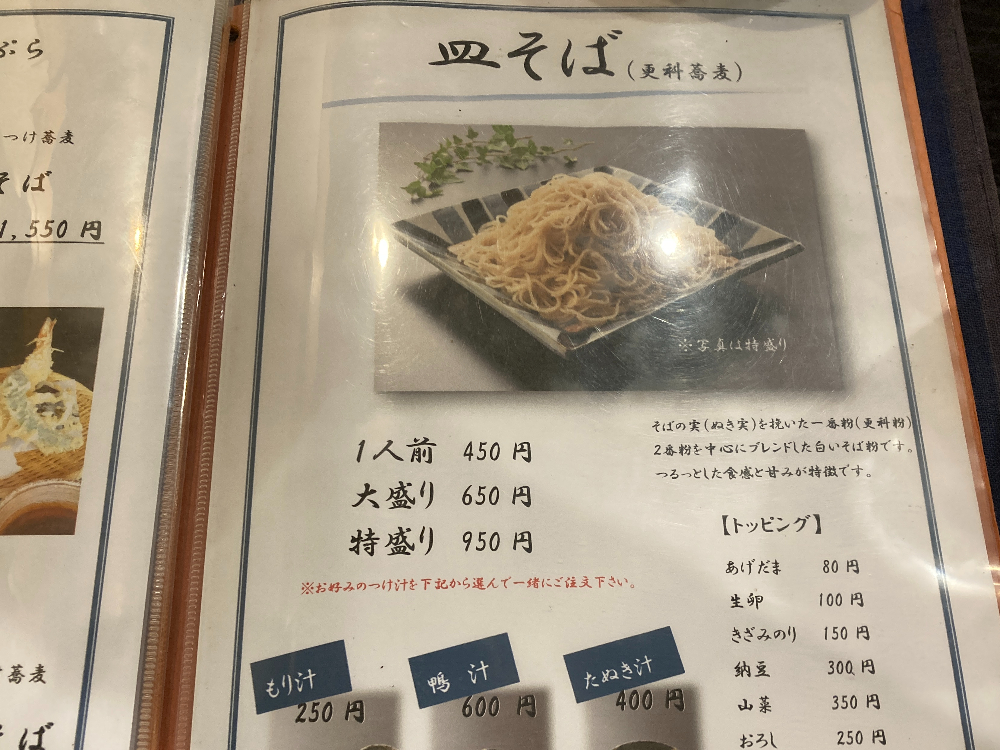 そばの量は1人前から特盛りまで選べます。1人前だと少し物足りなく感じるくらいおいしいので、そば好きの方であればぜひ大盛りをおすすめします!