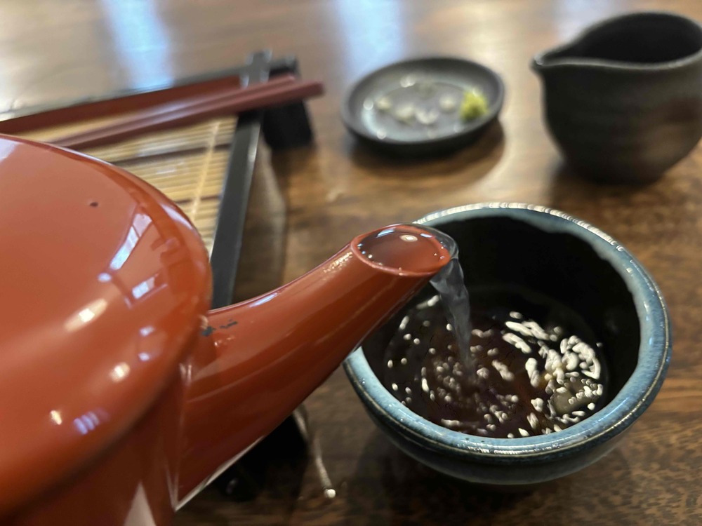 つゆをそば猪口(ちょこ)へ少しだけ注ぎ、いただきます。
