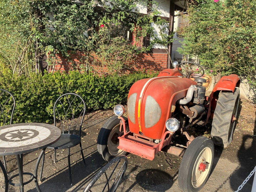 駐車場にはめずらしいレトロカーが並んでいて、食後の散策にまた別の楽しみを加えてくれます。