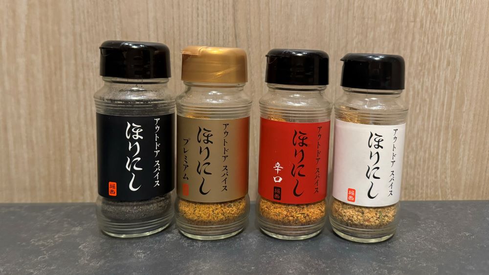 おすすめは写真一番左にある黒いラベルの「アウトドアスパイス ほりにしブラック」。