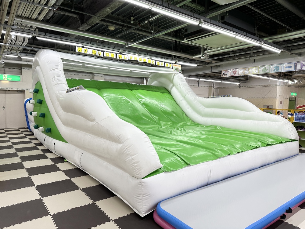 キッズランドに入ると、まず目に飛び込んできたのが、巨大な空気すべり台。高さがありますが、ふわふわしたエア素材でできているため安全性も抜群です。