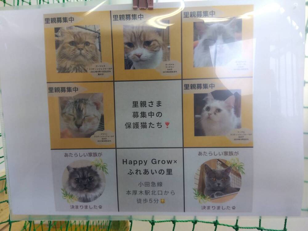 実は「HappyGrow ふれあいの里」にいる猫と、一部の犬は里親募集中です。動物カフェを通じて人との社会性を学びながら、運命の飼い主が現れる機会を授ける、動物達を第一に考えた優しさがひしひしと伝わります。