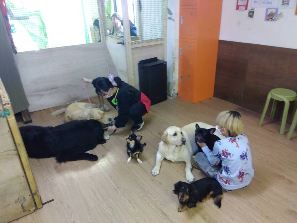 会計を済ませ、いざ入店。するといきなり小型犬から大型犬までさまざまな犬種が出迎えているではありませんか。