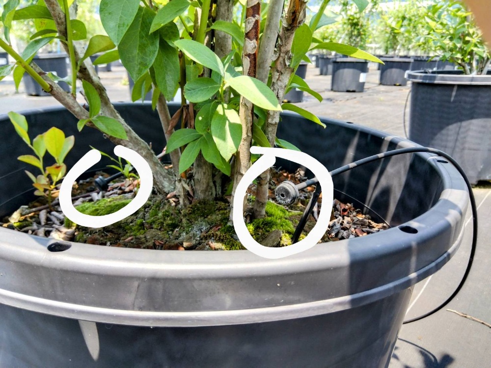 おいしさの秘訣は鉢を用いた養液栽培。ブルーベリーの育成環境に最適な土壌のph調整剤と液状肥料が、下のノズルから自動的に放出されています。