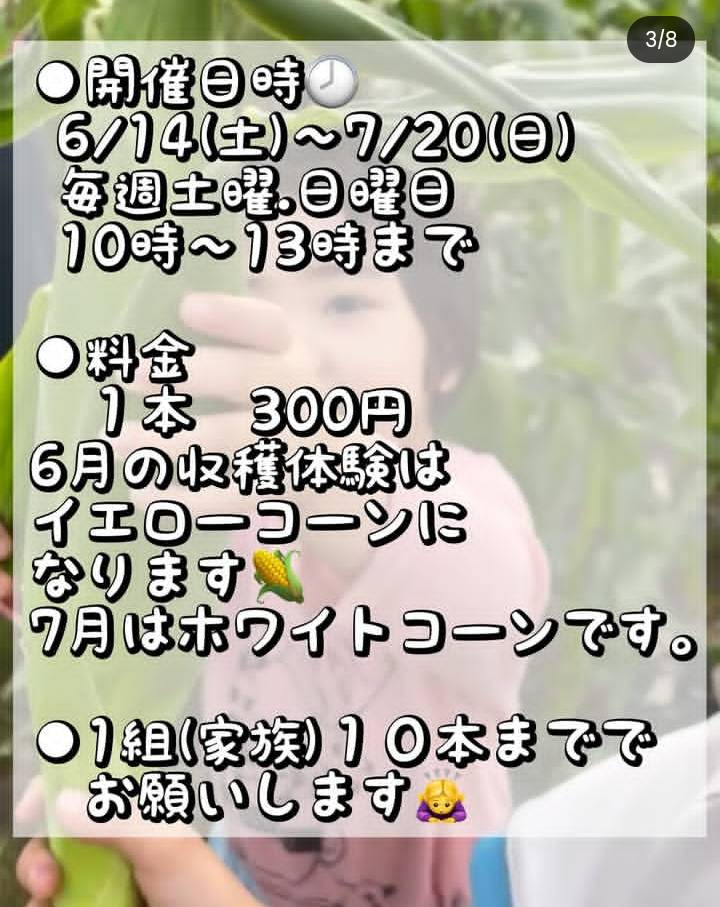※ブルーベリー狩り・トウモロコシ収穫体験ともに要予約