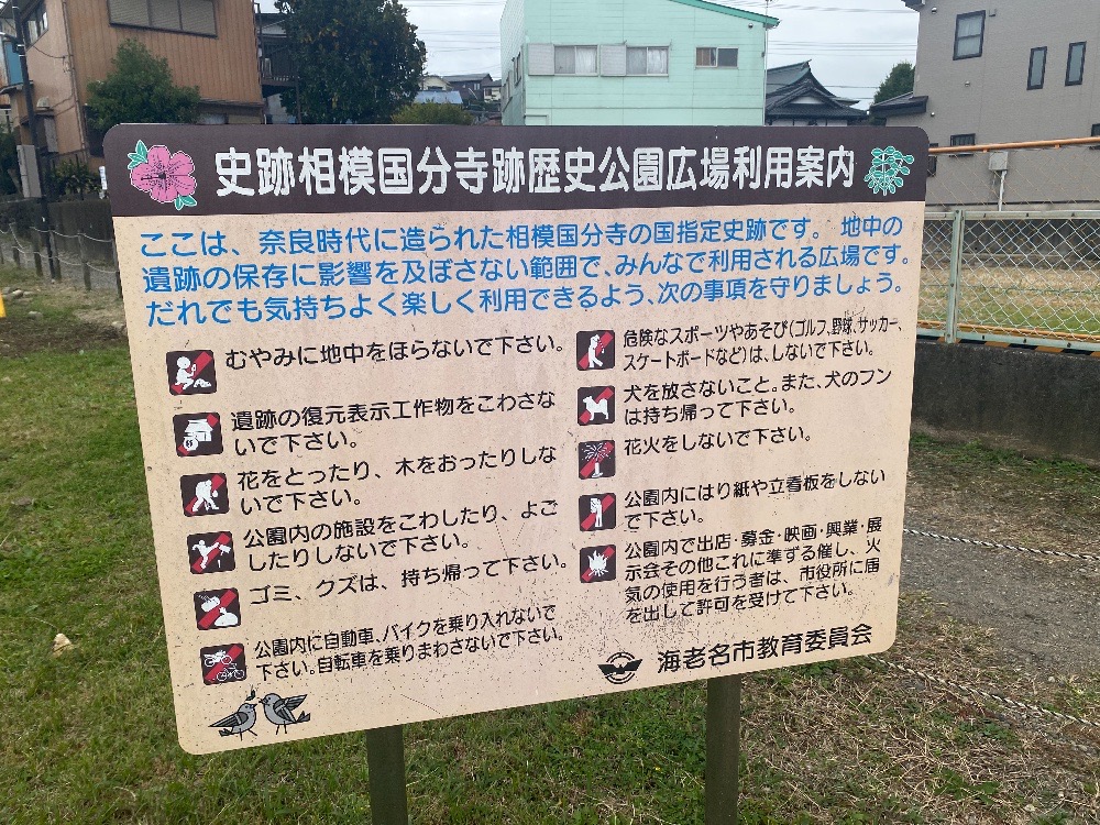 バスで行く場合は、海老名駅東口から国分ルートのコミュニティバスに乗り、「相模国分寺跡」で降りてくださいね。