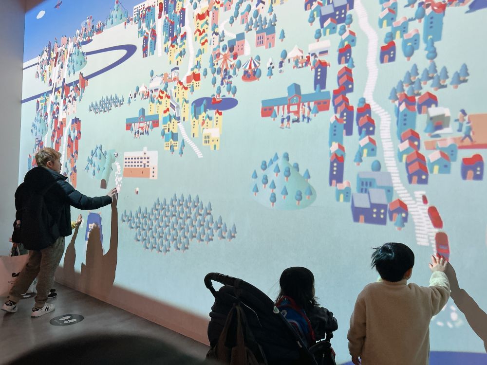 「インタラクティブアート“電車とつくるまち”」では、小田急電鉄によるまちづくりを遊びながら学ぶことができる場所となっています。