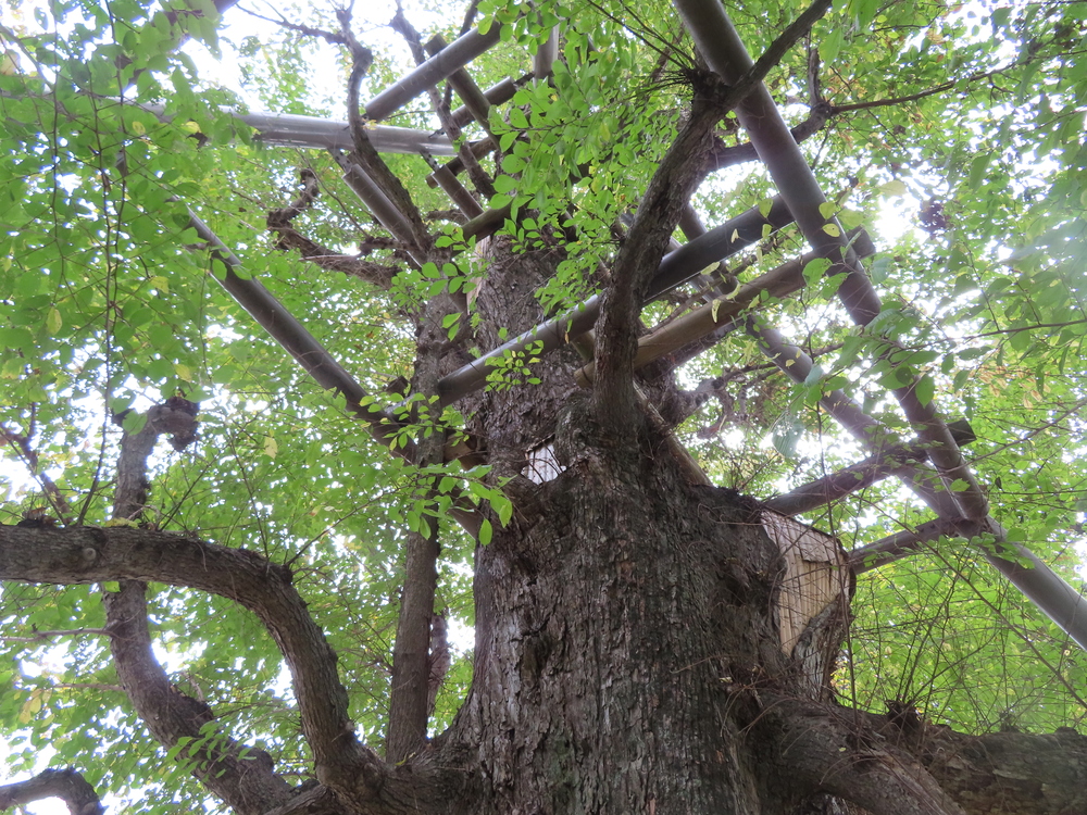 過去には樹幹内部の修理のほか、幹への負担を減らすために伸びた枝の剪定等の手入れが定期的におこなわれてきました。