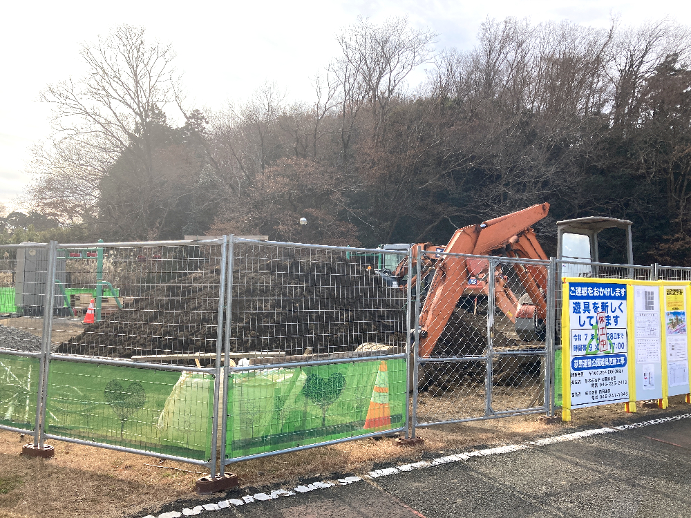 現在はその複合遊具がすべて取り壊され、改装工事が進んでいますが、工事現場には気になる新しい情報が掲示されていました!