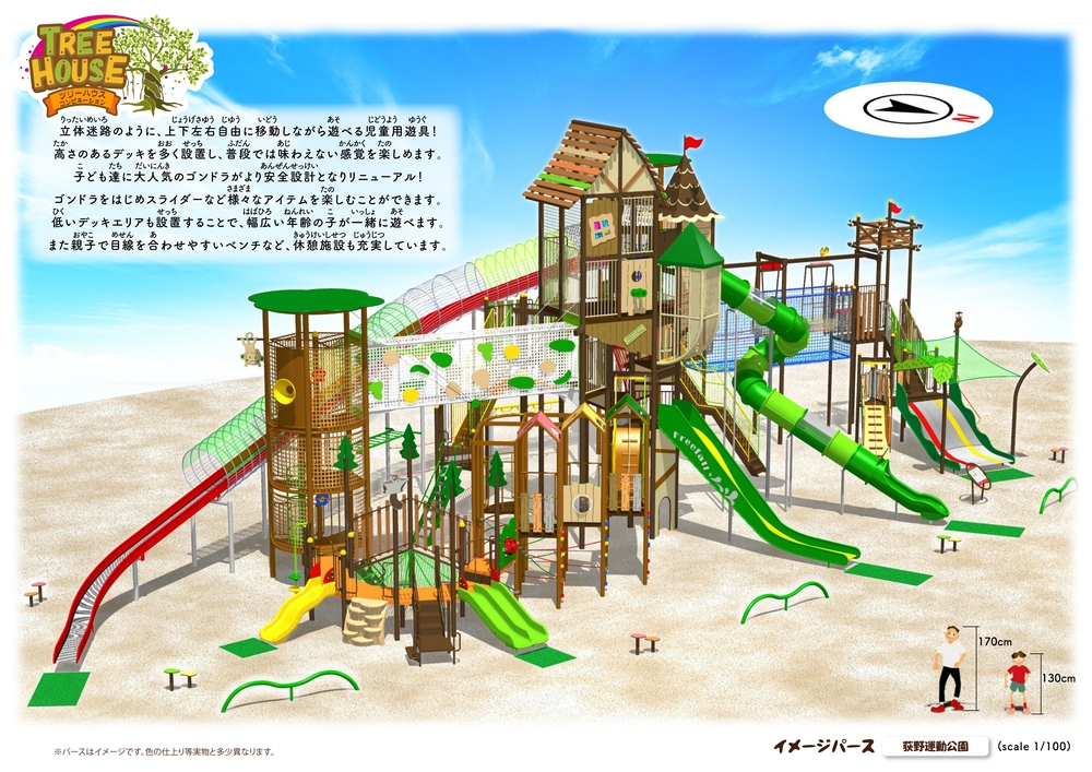 なんと、迷路のようで遊園地のような、立派な大規模複合遊具が建設される予定とのことです。新しい遊具が完成すれば、さらに楽しいスポットになること間違いなしですね!完成が待ち遠しい〜!