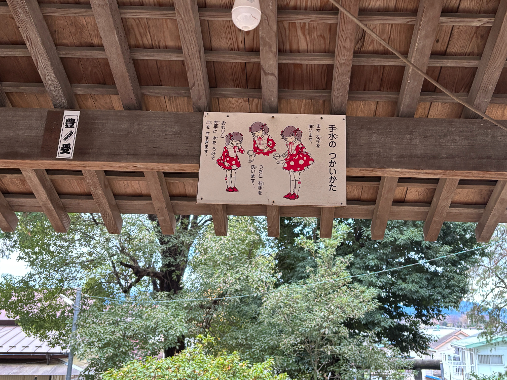 手水舎の上部には使い方の説明が掲示されていました。親切ですね。
