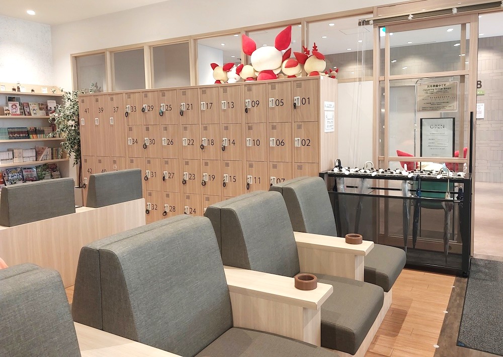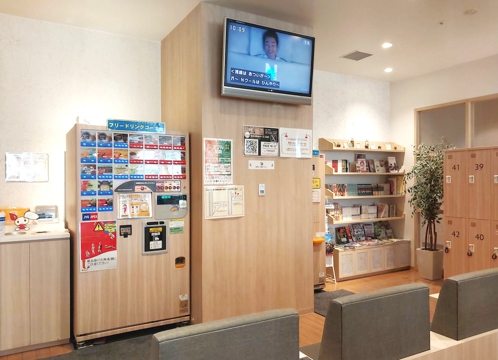 開放感のある待合室には、自由に利用できるドリンクコーナーや本・雑誌のコーナーがあります。