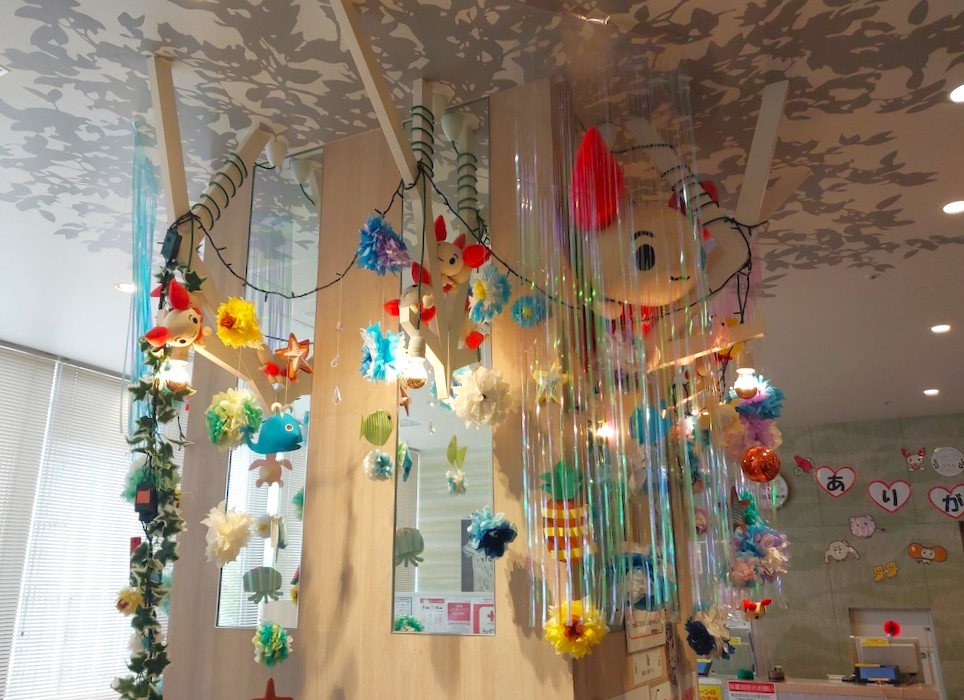 中央には大きな「シンボルツリー」があり、職員の方が手作りした季節ごとの飾りが施されていて、ほっとできる雰囲気が広がっています。