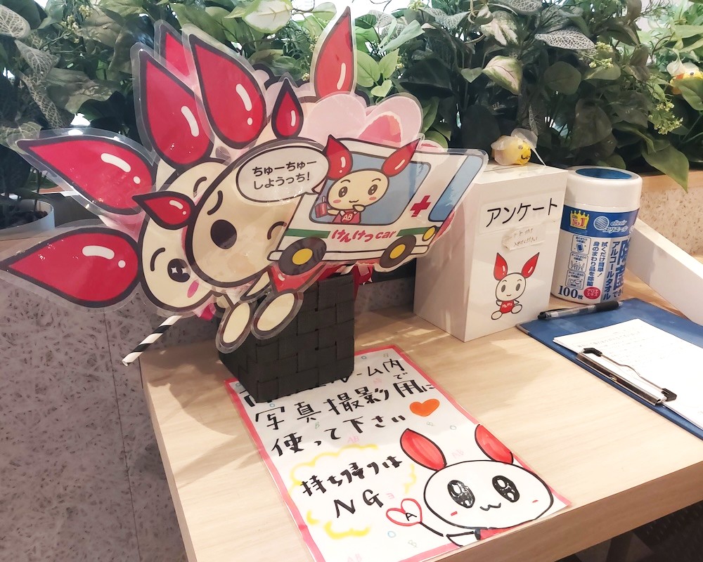 とってもかわいいキャラクター「けんけつちゃん」が、入口でお出迎えしてくれます。