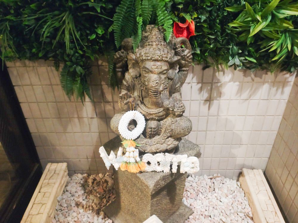 入り口では、象の頭を持つ神様「ガネーシャ」が迎えてくれます。タイでは「ピンクガネーシャ」が有名です。
