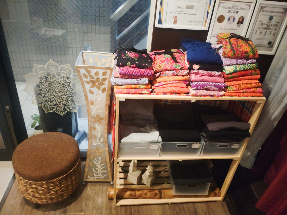 支払いが終わったら施術スタート……のその前に、Salaでは施術の際に着用するタイパンツとTシャツを選べるんです。