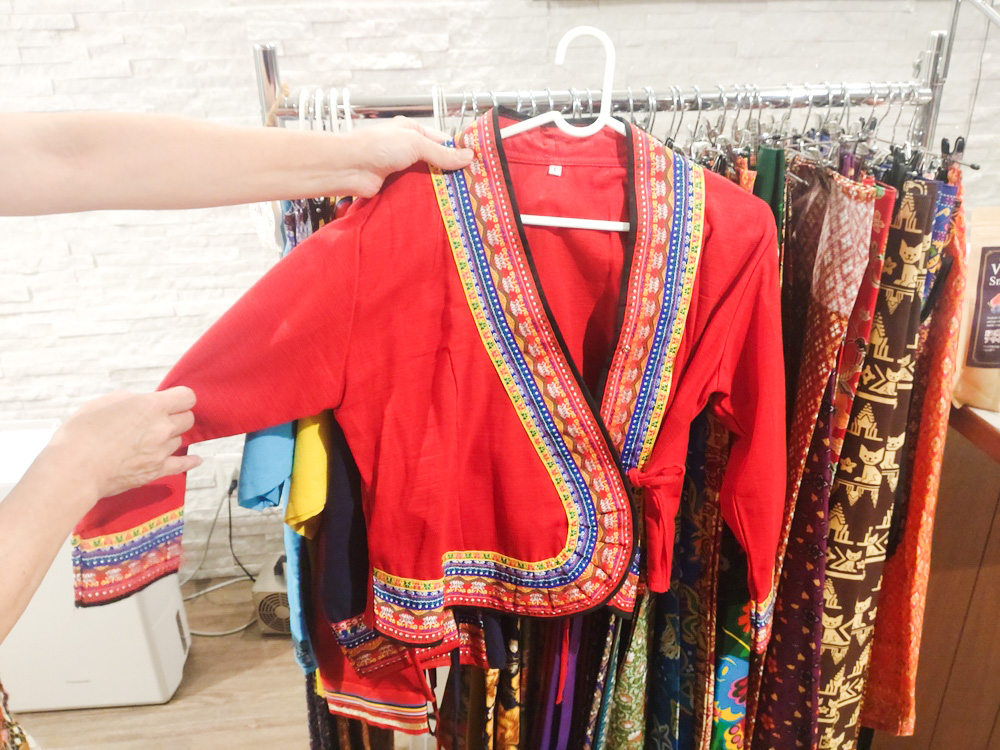 カラフルでデザインもかわいいタイパンツや、タイの民族衣装などは、販売もおこなっています。タイパンツなどの販売には、今後さらに力を入れていくそうです!