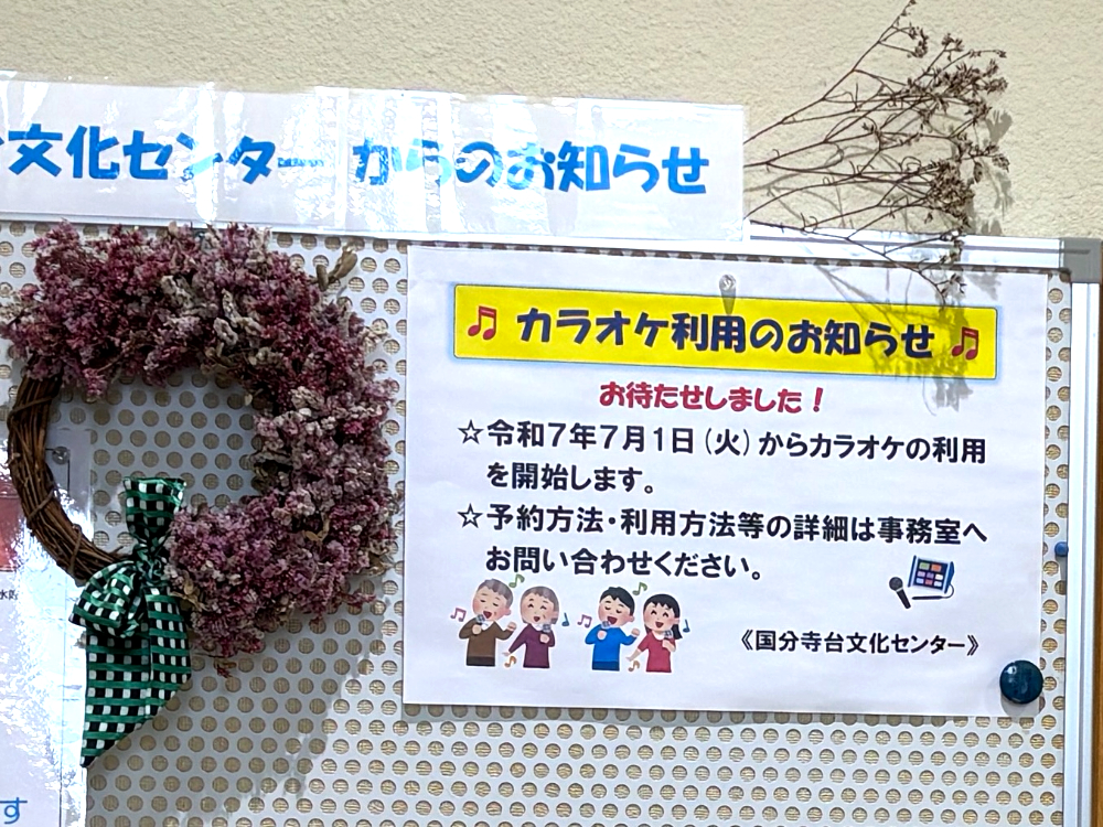 館内を見ていて驚いたのですが、国分寺台文化センターの2階にはカラオケができる防音仕様の部屋(カルチャールーム1)があるんです!こちらももちろん、予約すれば利用可能とのこと!