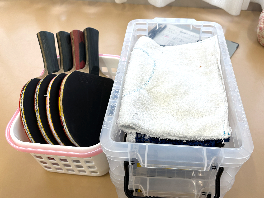 私たちも利用後にはチェックシートに習って、卓球台など、使用したものを元通りに戻し、備え付けられているモップを使用して掃除をしてから部屋を後にしました。