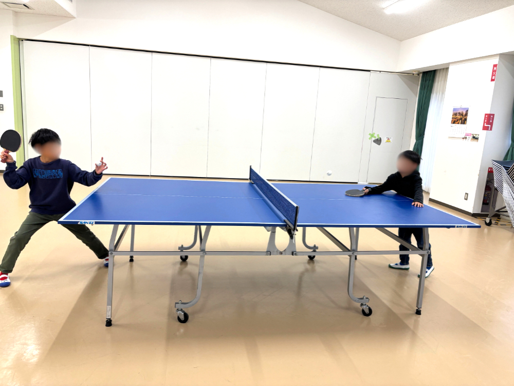 この日は、2階の集会室を一部屋借りて、家族4人で卓球を楽しみました。