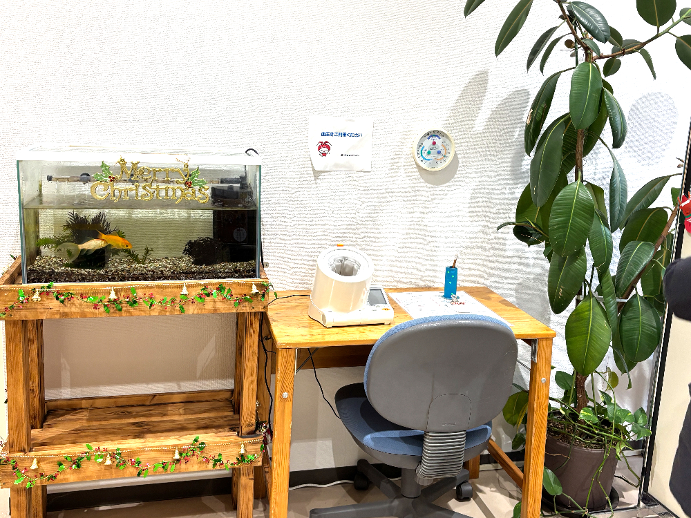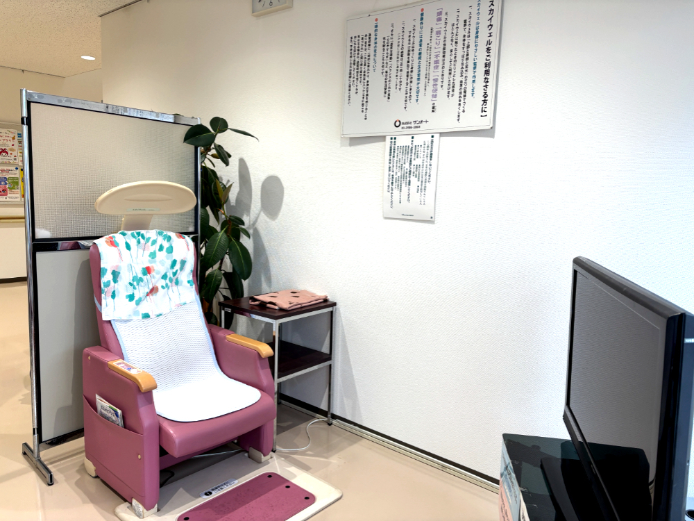 ヘルスコーナー(血圧計1台とスカイウェルという交流高圧電位治療器が2台設置されています)。
