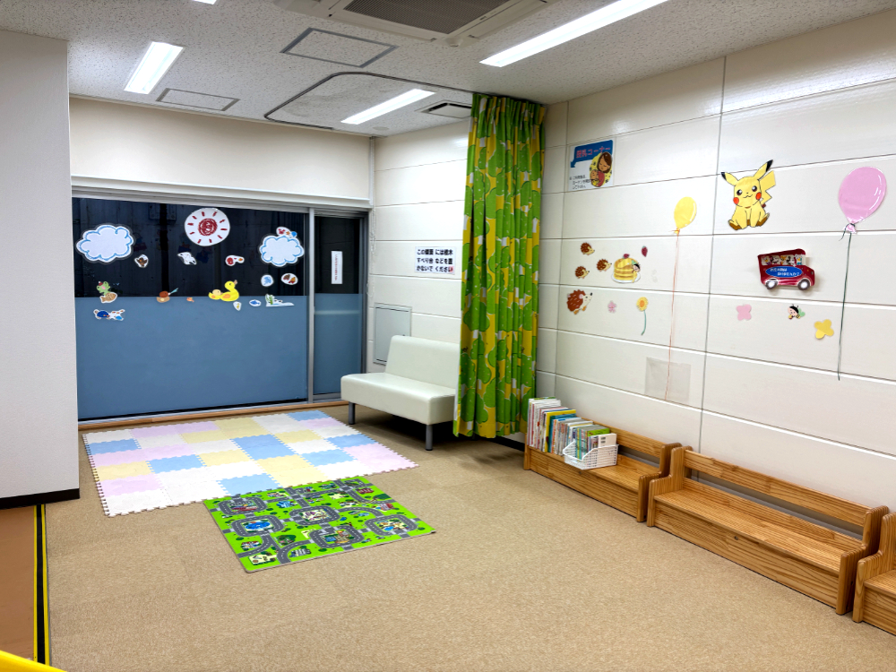 キッズルーム(プレイマットや小さなすべり台などがあり、小学生未満の子どもと保護者のみ利用できます)。