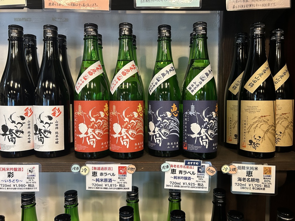 豊富な種類の日本酒の中でも、一番人気はこちらの「恵 青ラベル」だそうです!