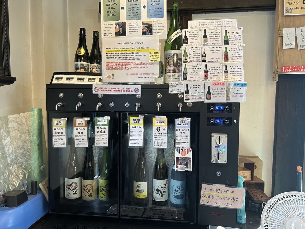 試飲の方法は、専用コインをレジで購入し、サーバーから飲みたい日本酒を選んだら、コインを入れてボタンを押すだけ。一回の試飲は30mlです。