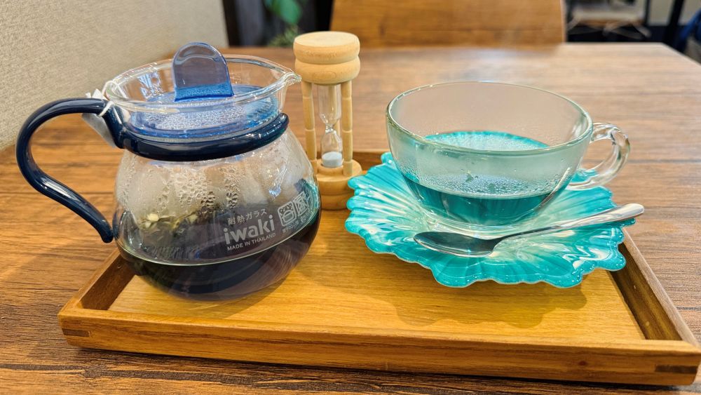 こちらは、鮮やかなブルーが特徴的な「新月」という名のハーブティー。