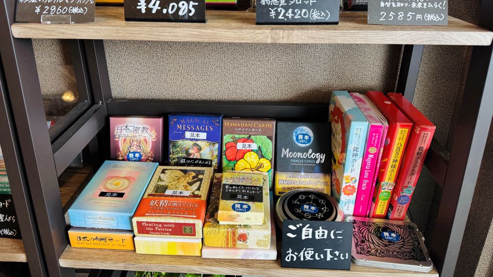 店内にはタロットカードの販売や、自由に使えるオラクルカードなども用意されており、占いに興味がある方はもちろん、「自分を見つめ直す時間」を大切にしたい方も、きっと有意義なひとときを過ごせます。