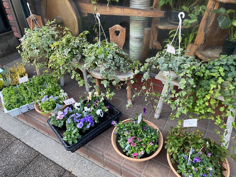 他にもグリーンの鉢植えやパンジーが生き生きと迎えてくれました。グリーンの鉢植えはお部屋に置いたら一気におしゃれなお部屋に変わりそう!