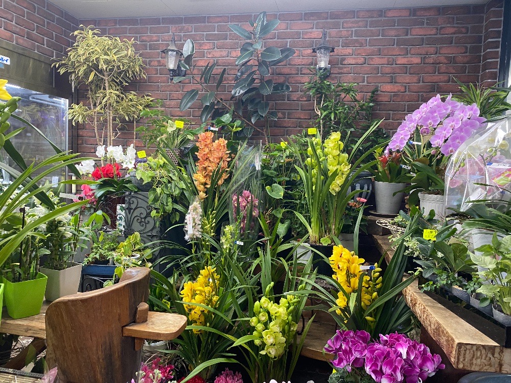 店内に入ると胡蝶蘭や大きな鉢植えがズラリと並んでいました。どれも立派で迫力があります。
