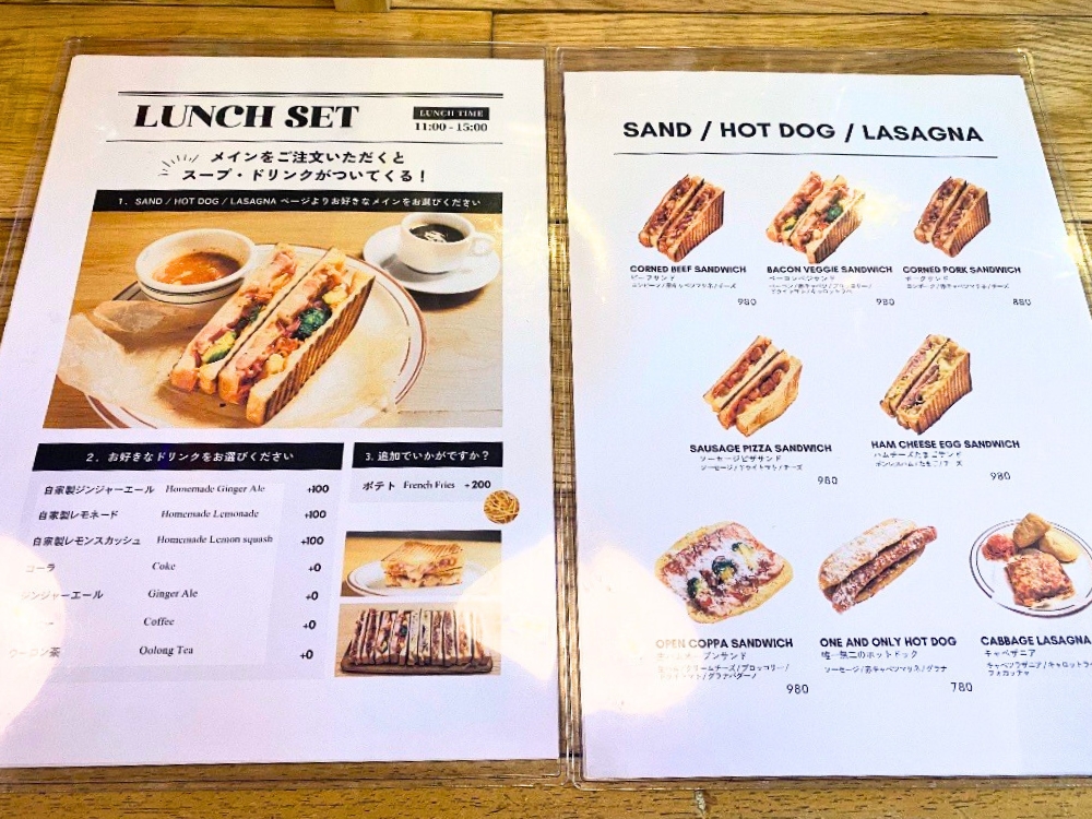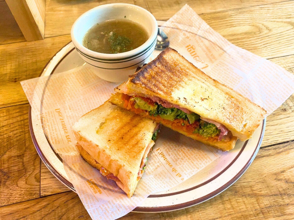 11:00〜15:00の間はランチセットがあり、サンドイッチを注文するとドリンクとスープがついてきます。お得でうれしいですね!