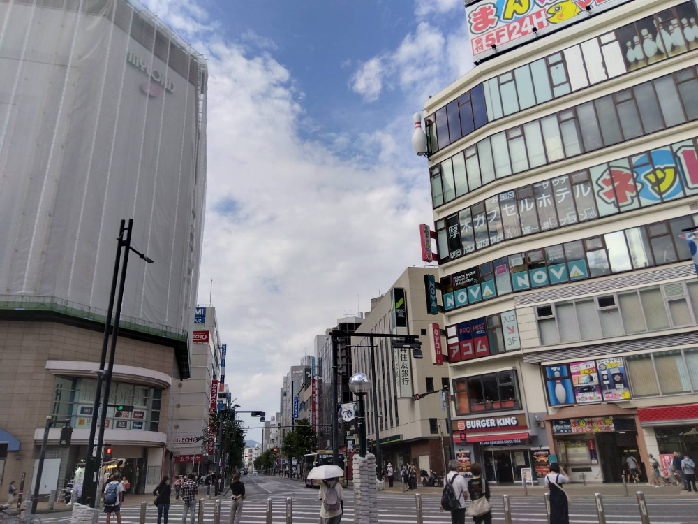 久遠チョコレート厚木店へは、本厚木駅北口正面のあつぎ大通りを道なりに進みます。