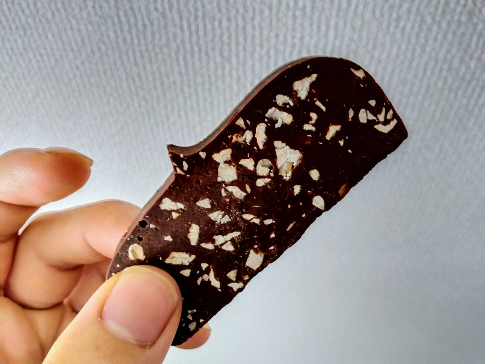 何より口の中でなめらかに溶けていく感触が最高です。一枚一枚のサイズは大きくありませんが、板チョコ1枚分を食べた後のような満足感がありました。